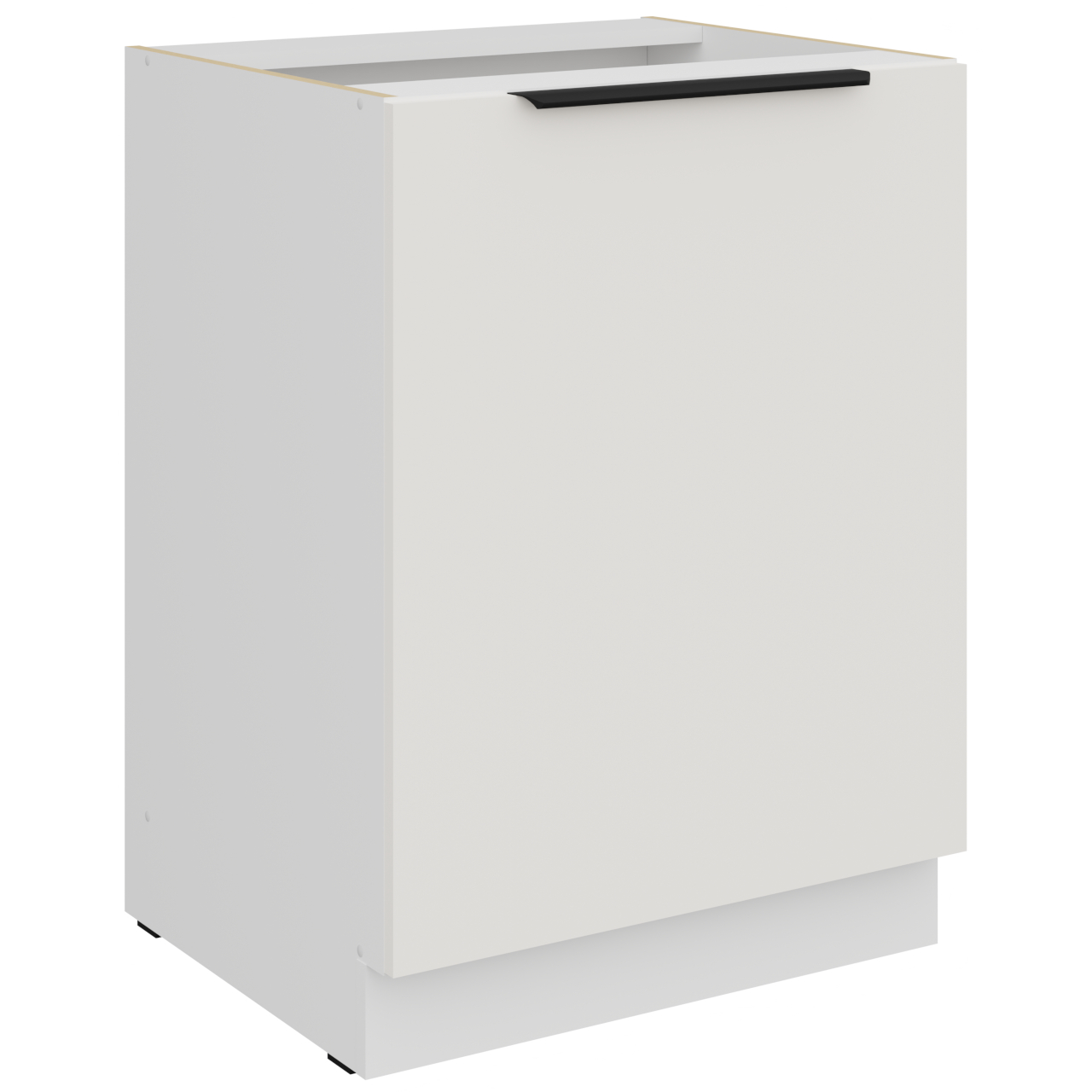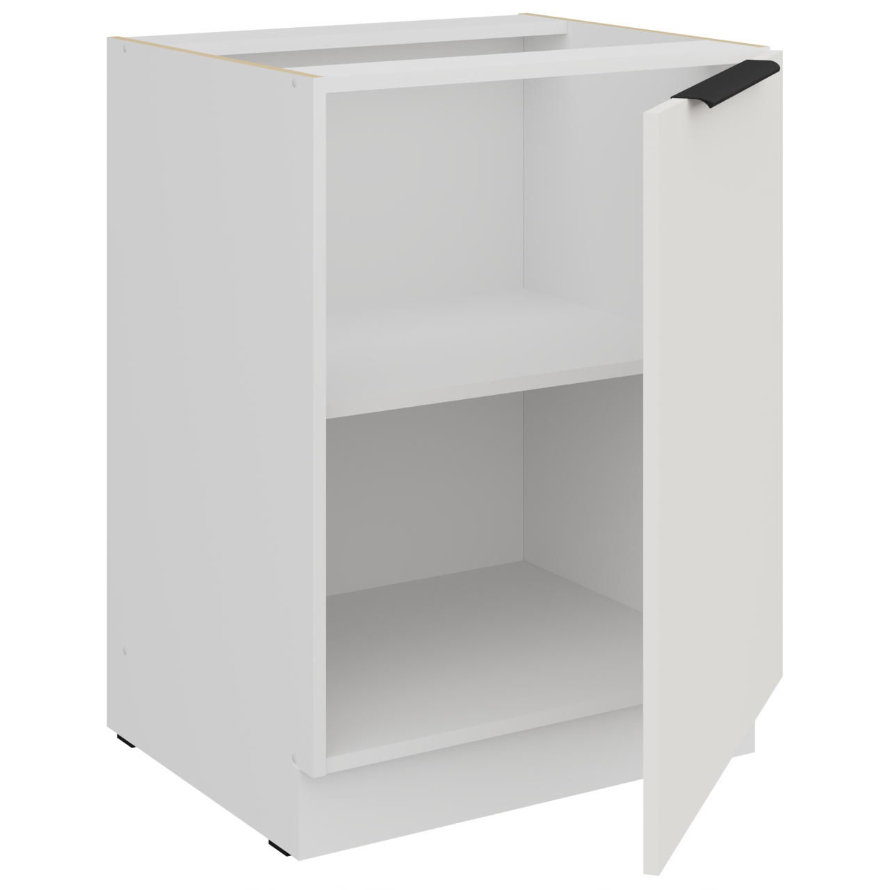 Cabinet interior in white colour. The cabinet has one Front panel. Handle holes are drilled as blind holes (not through). |