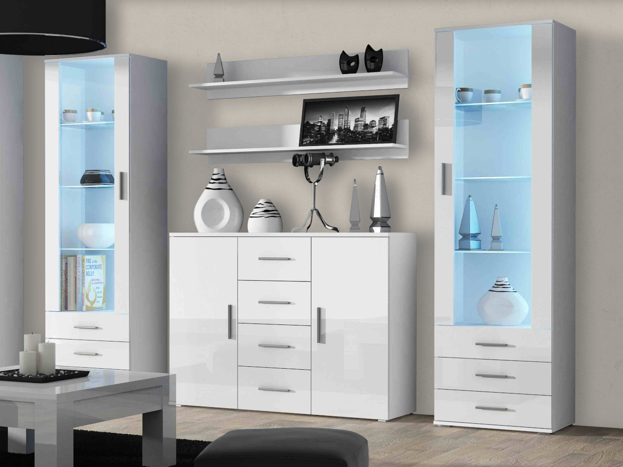 High display cabinet SINDI SH1 (60/192/41)- 2 pcs Wall shelf SINDI SH5 (125/20/20)- 2 pcs Storage cabinet SINDI UNI SH6 (132/92/38) |