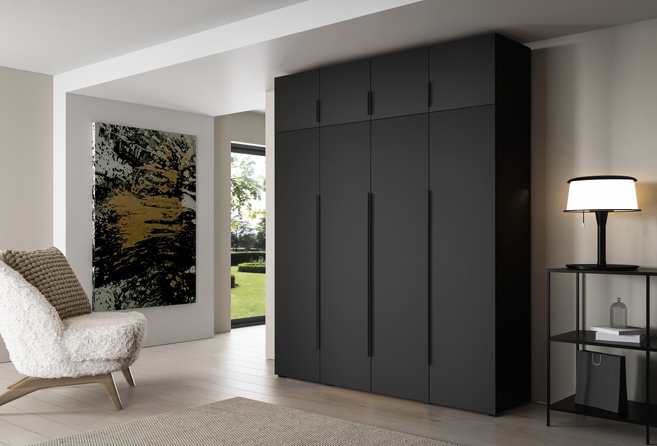 Good morning. The wardrobe and the extension are made of the same board, so they are exactly the same color.