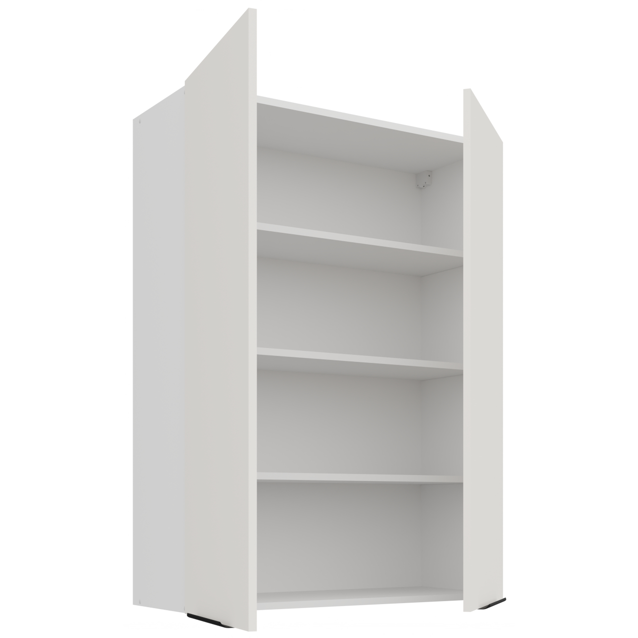 Cabinet interior in white colour. Handle holes are drilled as blind holes (not through). |