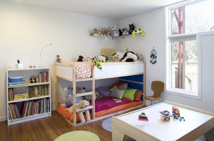 If are a parent of an onl child bunk bed is always a great idea. You child can sleep on the upper bunk while lower part can be a space for toys or books. Would you like your child to be even happier? Cover the lower part of bed with curtain, put wall lamp. In such a way you can create a 'shelter' where your child can read fascinating strories of their favourite book heroes.